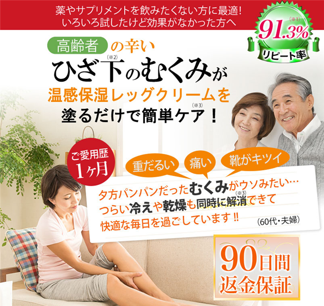 夜、軽くマッサージしながらひざ下に塗るだけですぐに温かくなって保湿も抜群です! 温感効果と保湿効果を併せ持ったクリームです。